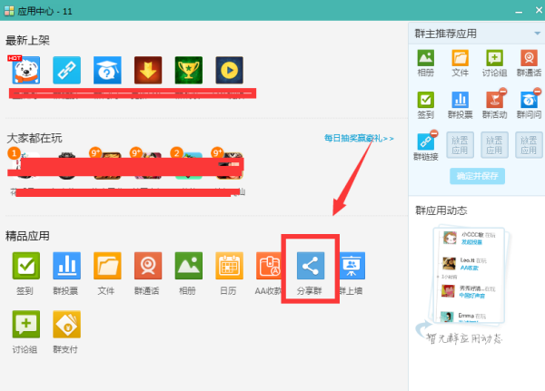 4.点击精品应用中的“分享群”。如下图: